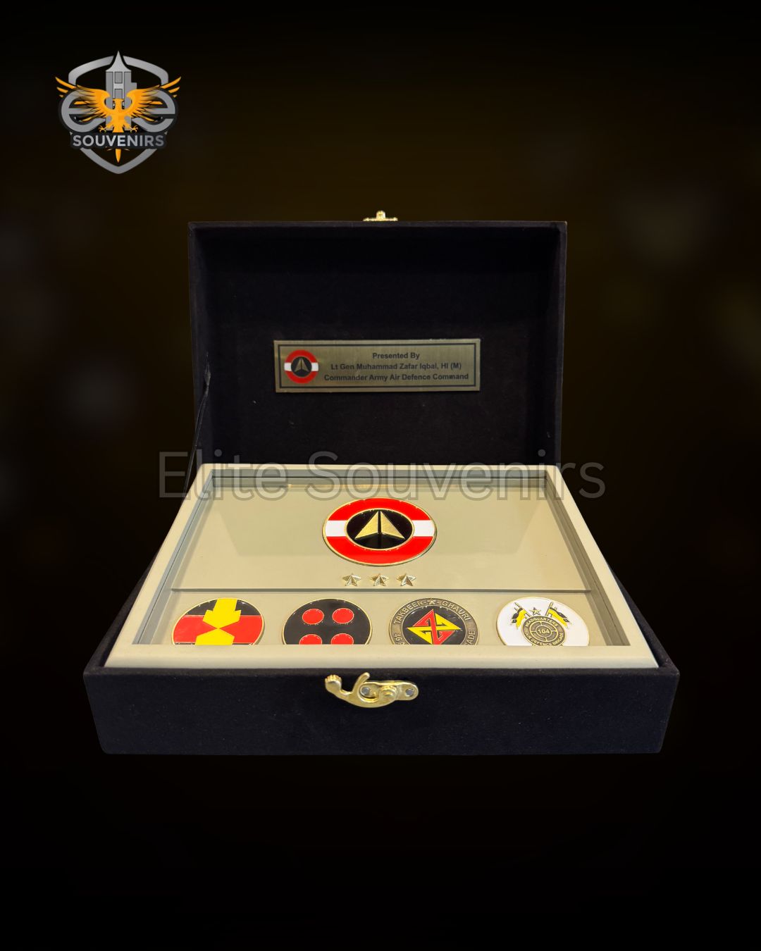 Perfect for official ceremonies, unit recognitions, retirements, commemorative events, and institutional gifting, the presentation box ensures both protection and prestige. Custom plaques, insignia arrangements, and branding options are available to meet organizational requirements.