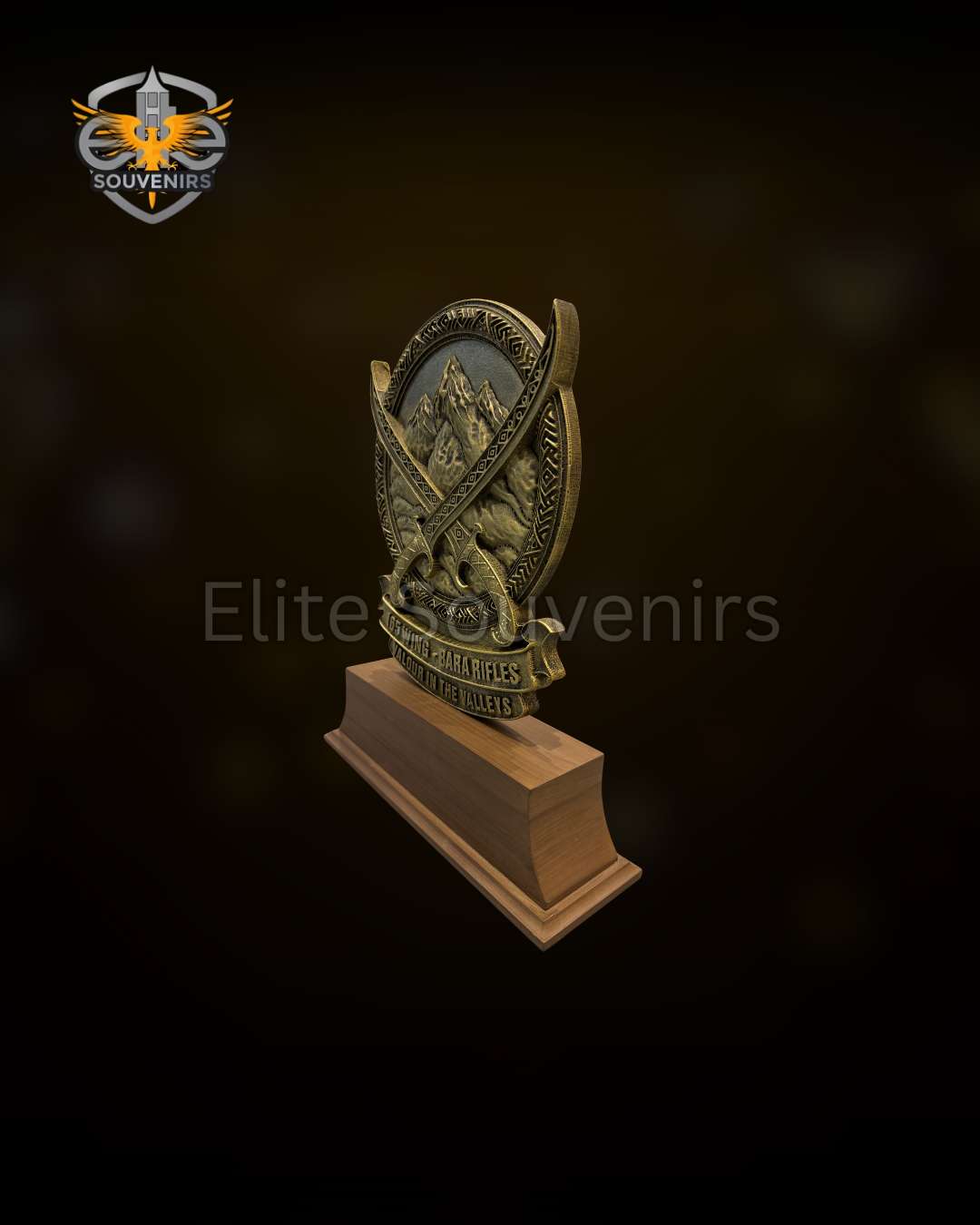 This commemorative award is designed for official recognition, ceremonial presentations, and institutional use. The product features a detailed metal emblem mounted on a solid wooden base, ensuring durability and a formal appearance suitable for professional settings.